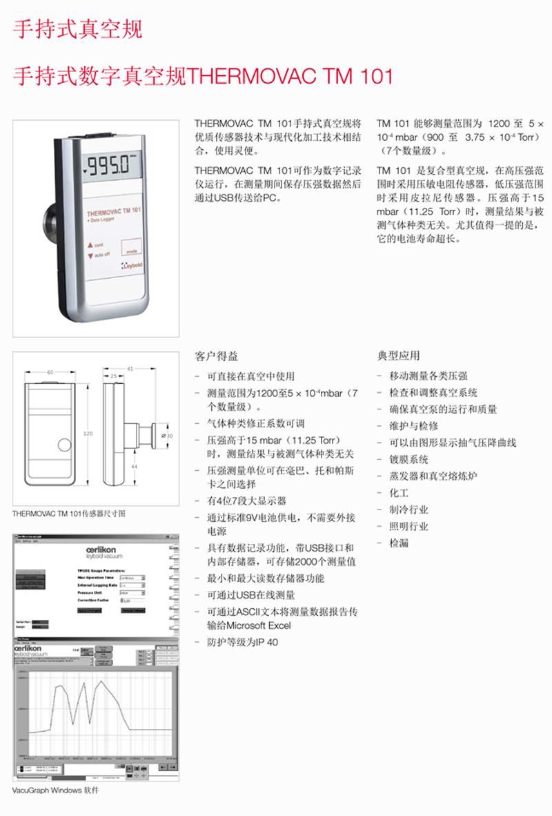 Leybold萊寶TM101手持式數(shù)字真空規(guī)THERMOVAC皮拉尼規(guī)真空計(jì)傳感器